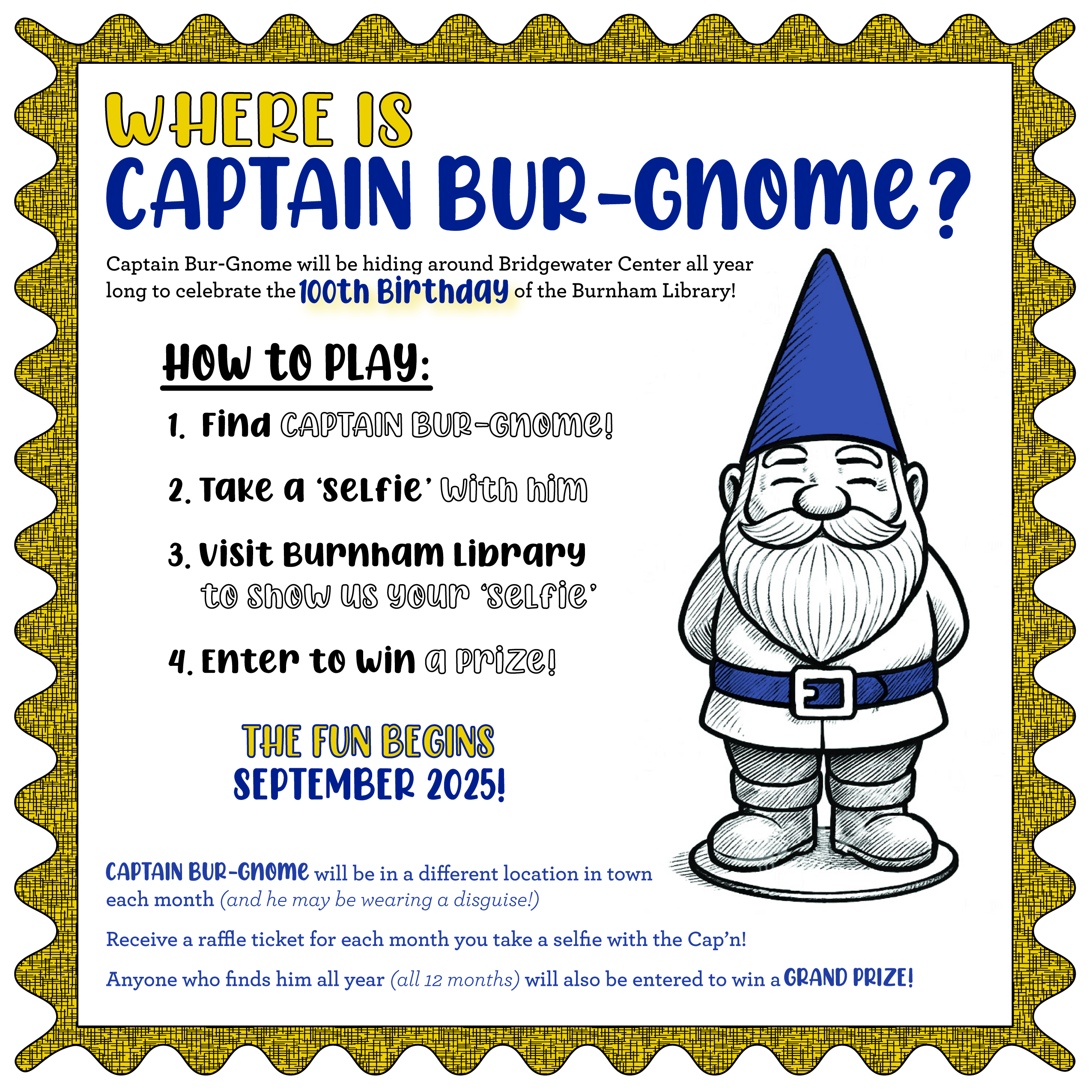 Founded in 1926, the Burnham Library has been a cornerstone of Bridgewater for nearly a century, dedicated to sparking curiosity, supporting lifelong learning, and fostering a love of reading. More than a place for books, we are a welcoming space where ideas are shared, connections are made, and creativity thrives.