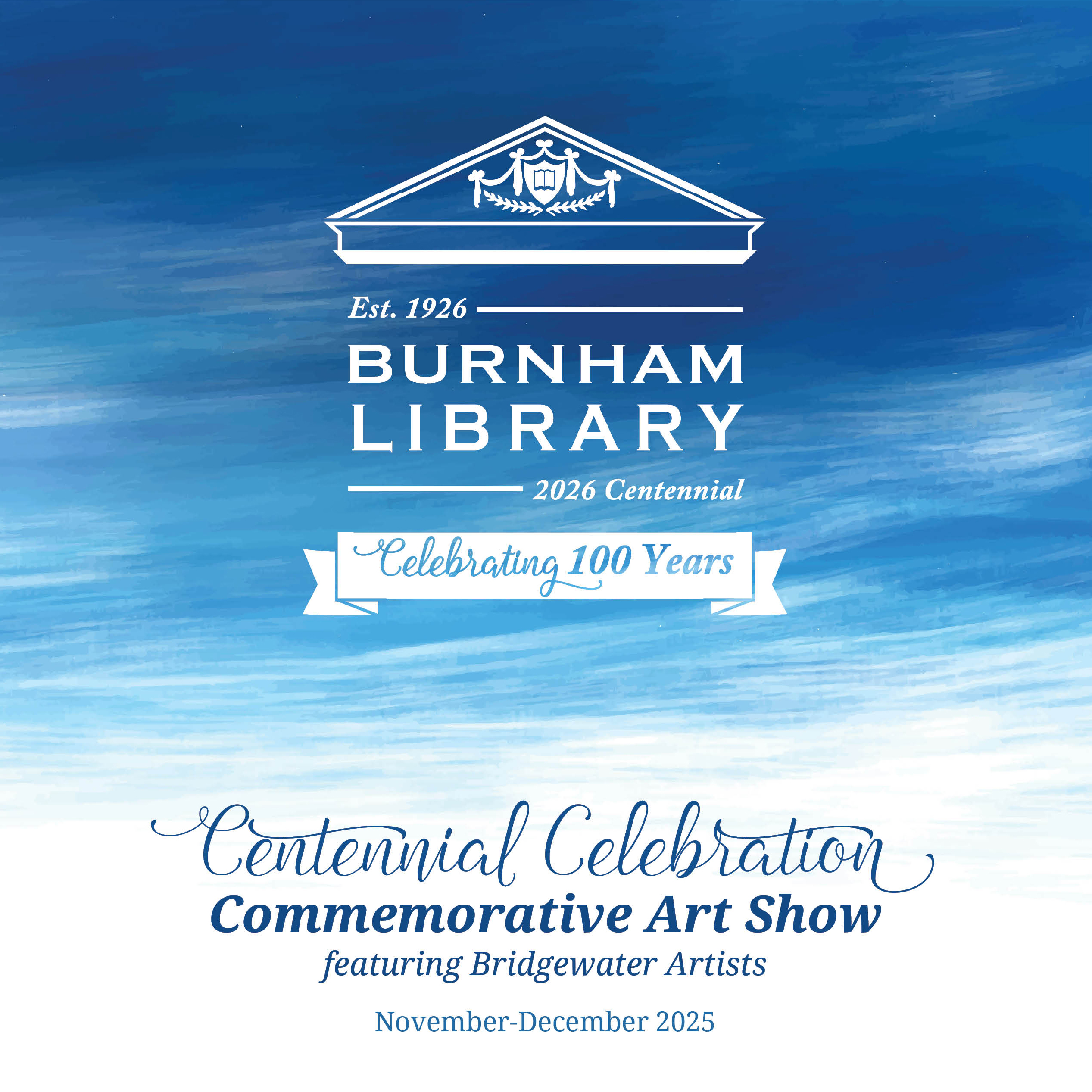On view November 4 – December 26 In honor of Burnham Library’s Centennial, we’re hosting a special two-month art exhibition showcasing the incredible talent of local Bridgewater artists. Please stop… |