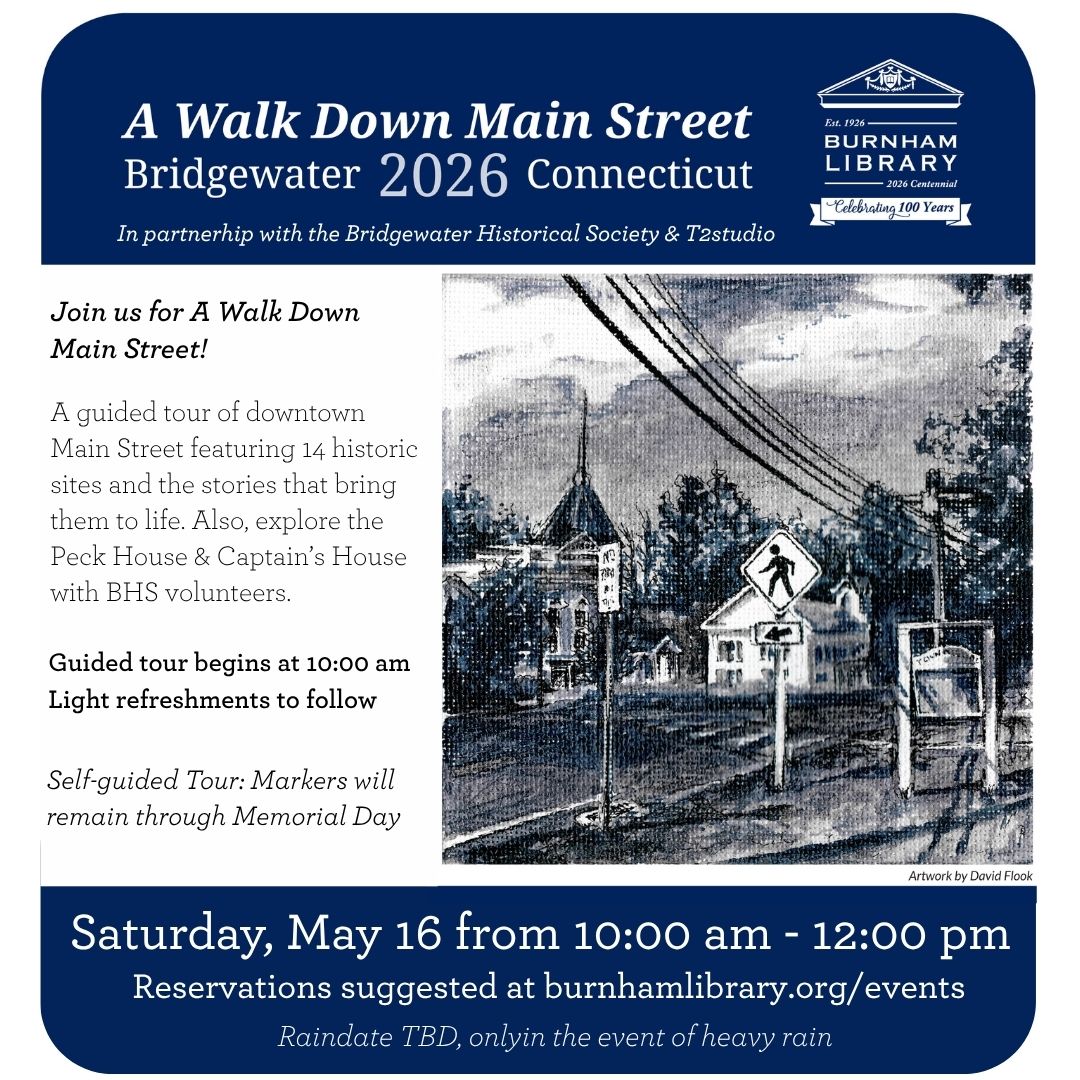 A Walk Down Main Street Guided tour begins at 10:00 am. Reservations suggested, RSVP Below In partnership with the Bridgewater Historical Society and T2studio Saturday, May 9, from 10:00 –…
