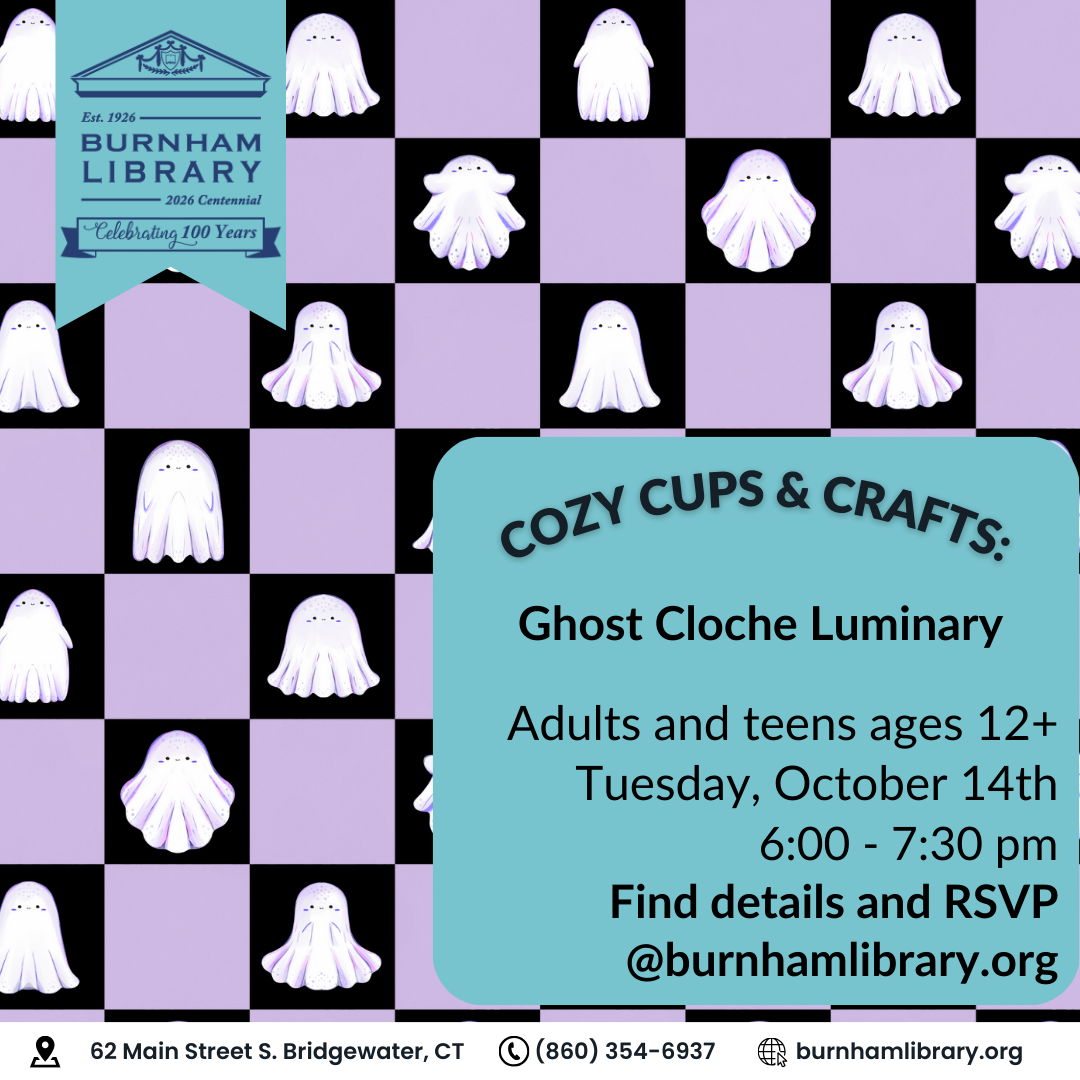 Get into the spooky spirit! Join us for a cozy crafting session where you'll create your own boo-tiful ghost cloche luminary—perfect for Halloween décor! Enjoy Halloween-themed refreshments while you craft! This program is for ages 12+. Registration is required to attend. Please RSVP below. Questions? Email us at ksteele@burnhamlibrary.org