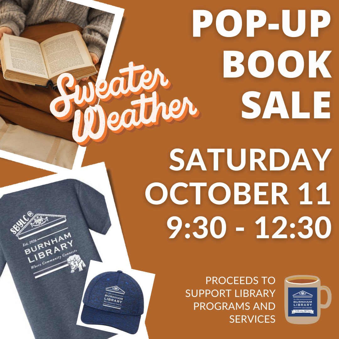 Browse a small but mighty selection of like-new and gently-used books for all ages. Stop by and find your next great read at a great price! Also shop for NEW Burnham Library swag. Treat yourself!