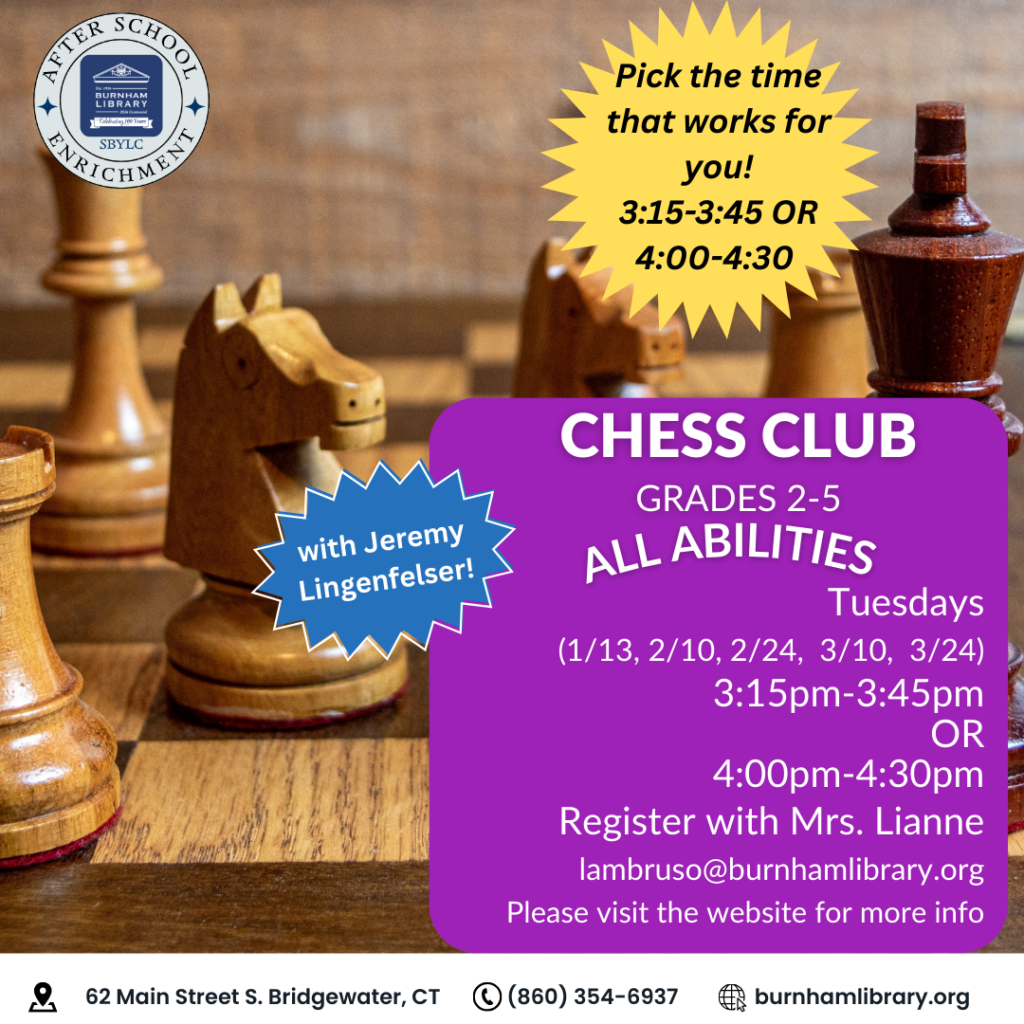 Come visit Burnham Library for the 15th annual ‘Take Your Child to the Library Day’ celebrated throughout Connecticut and the nation. Ahoy Matey! The Burnham Library is full of Pirate Adventures. Follow our treasure map and complete pirate activities to claim your booty!
