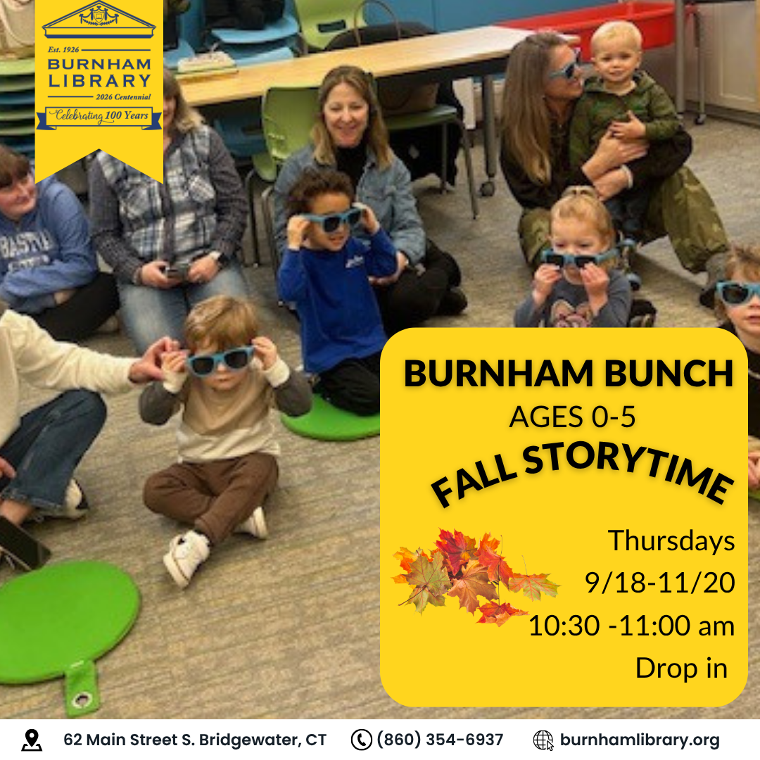 The Burnham Library 62 Main Street South, Burnham Library, Bridgewater, CT, United StatesBurnham School Visits Grades K, 1, 5 & 3.